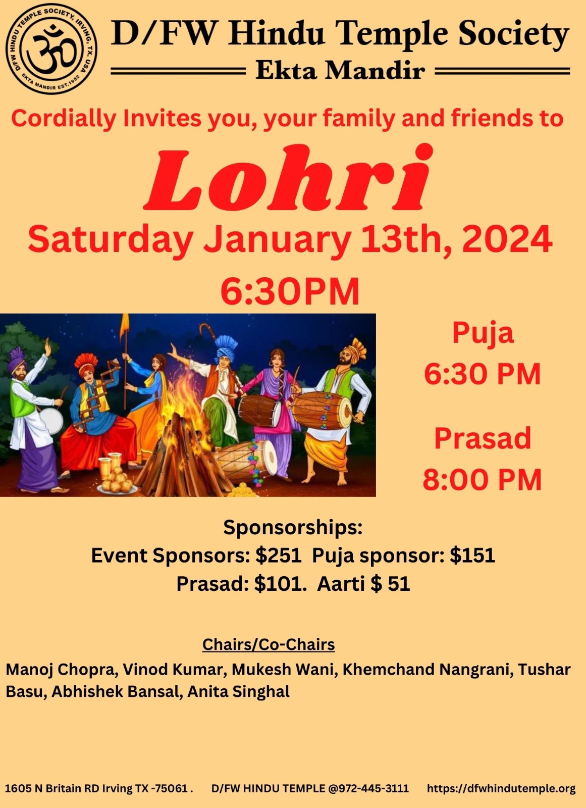 On Tuesday March 3rd morning, Temple will open for Darshan at 11am due to Lunar Eclipse.